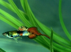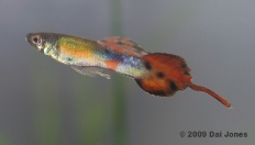 Caudal fins basic form is round in shape and is equal to 4/10 of the body length, with the middle rays extend to form a needle/pin shape.